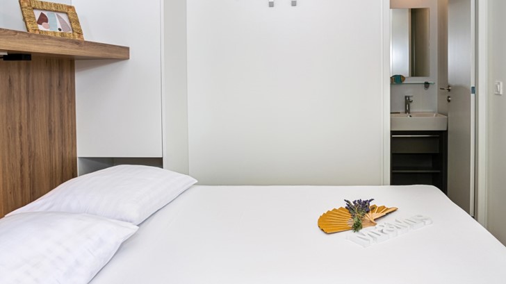 Mobilne kućice Adria Superior 4+1 (L) smještene su direktno na pješčanoj plaži, a iz njihove unutrašnjosti pruža se otvoren pogled na more i grad Omiš. Savršene za goste koji žele luksuz, komfor i neposrednu blizinu mora.